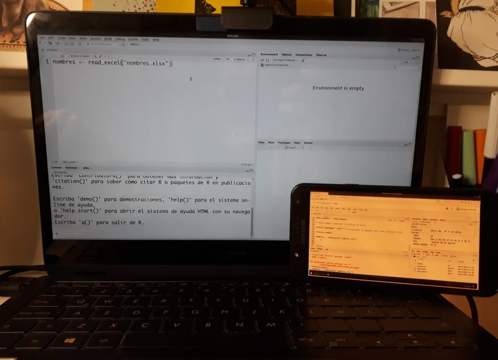 Si tienes una tablet, puedes conectarte a Zoom desde ella para mirar el taller y en paralelo trabajar en tu computador. Puedes intentarlo también usando tu teléfono móvil, pero es posible que se vea demasiado pequeño el código. Si optas por esta opción, la sugerencia es que te conectes a Zoom desde ambos dispositivos (necesitarías dos cuentas para eso). Así, si en algún momento del taller algo no te resulta, podrás compartir la pantalla para que podamos resolverlo.