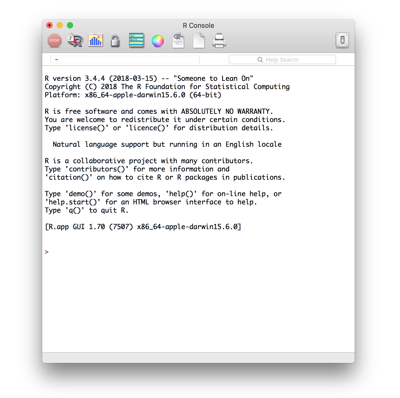 (La información sobre la versión de R y sobre el sistema operativo que aparece en ese mensaje inicial se verá distinta en tu caso, porque estas capturas de pantalla son antiguas.)