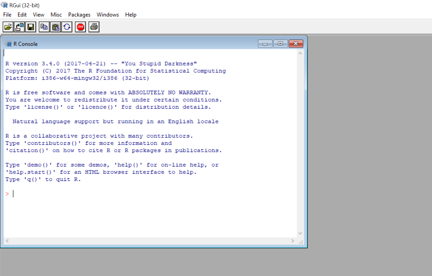 Si todo sale bien, al abrir R en tu computador deberías ver algo parecido a esto si usas Windows: