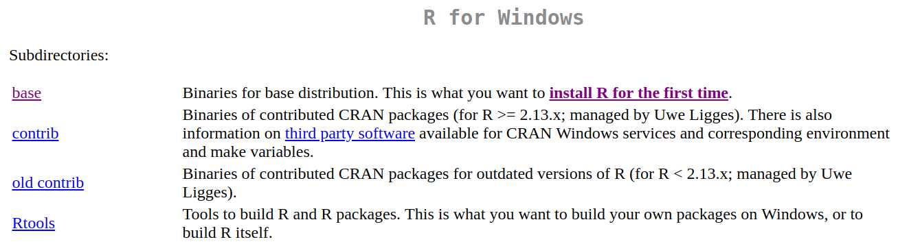 Descarga R desde https://cran.r-project.org/. Debes elegir la opción que corresponda, según tu sistema operativo.